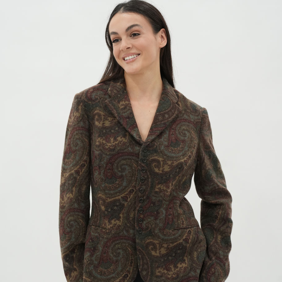 Ralph Lauren black label Paisley printed wool blazer. Lamb wool 100%. Size: UK 12, EU: 40